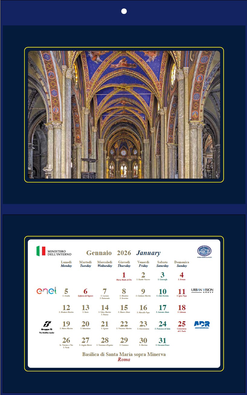 Negli anni la pubblicazione del Calendario del Fondo Edifici di Culto del Ministro dell’Interno, ha consentito di far conoscere i più grandi capolavori artistici valorizzando le più svariate categorie di beni che costituisco il suo variegato e prezioso patrimonio, orgoglio italiano nel mondo.